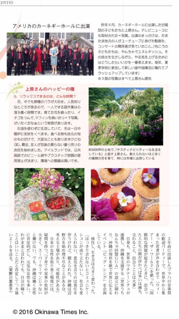 Article in the Okinawa Times Home Plaza Magazine on February 7, 2019 on GUA Member Eriko Uehara Hopkinson